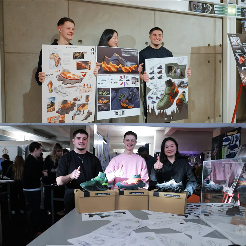 Students from CREAPOLE design school in France participated in a 3-day shoe design workshop hosted by Adobe and On, a performance running shoes company. The winning designs were printed by Mimaki and awarded to the students.