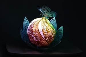 Besides transparency, clear ink can make a color expression of translucency by the simultaneous apply of clear ink and color ink. Clear ink gives an additional effect to show a different image when the object is lighted from its inside. The combination of clear and color ink will broaden the design range.
