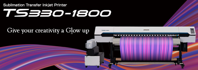 "TS330-1800" is a water based dye sublimation inkjet printer for textiles and apparel, which achieves high productivity of 73 m²/h in Draft mode and high image quality thanks to Mimaki’s printing technologies, as well as improved conveyance mechanism and renewed usability, enabling constant high quality and stable printing.