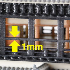Thanks to Mimaki original wave formcontrol and high precision ink firing technology, amassed in the development of inkjet printer for professionals to suit the high quality image, our 3D printer’s precise ink droplet placement has been achieved. It enables the realistic reporduction of detailed design such as the sharpe edge and thinner layer shape.